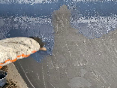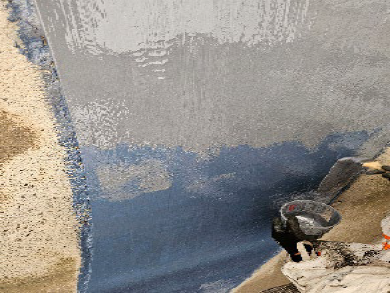 • Eerste beschermlaag aangebracht: Belzona 1321 (blauw).